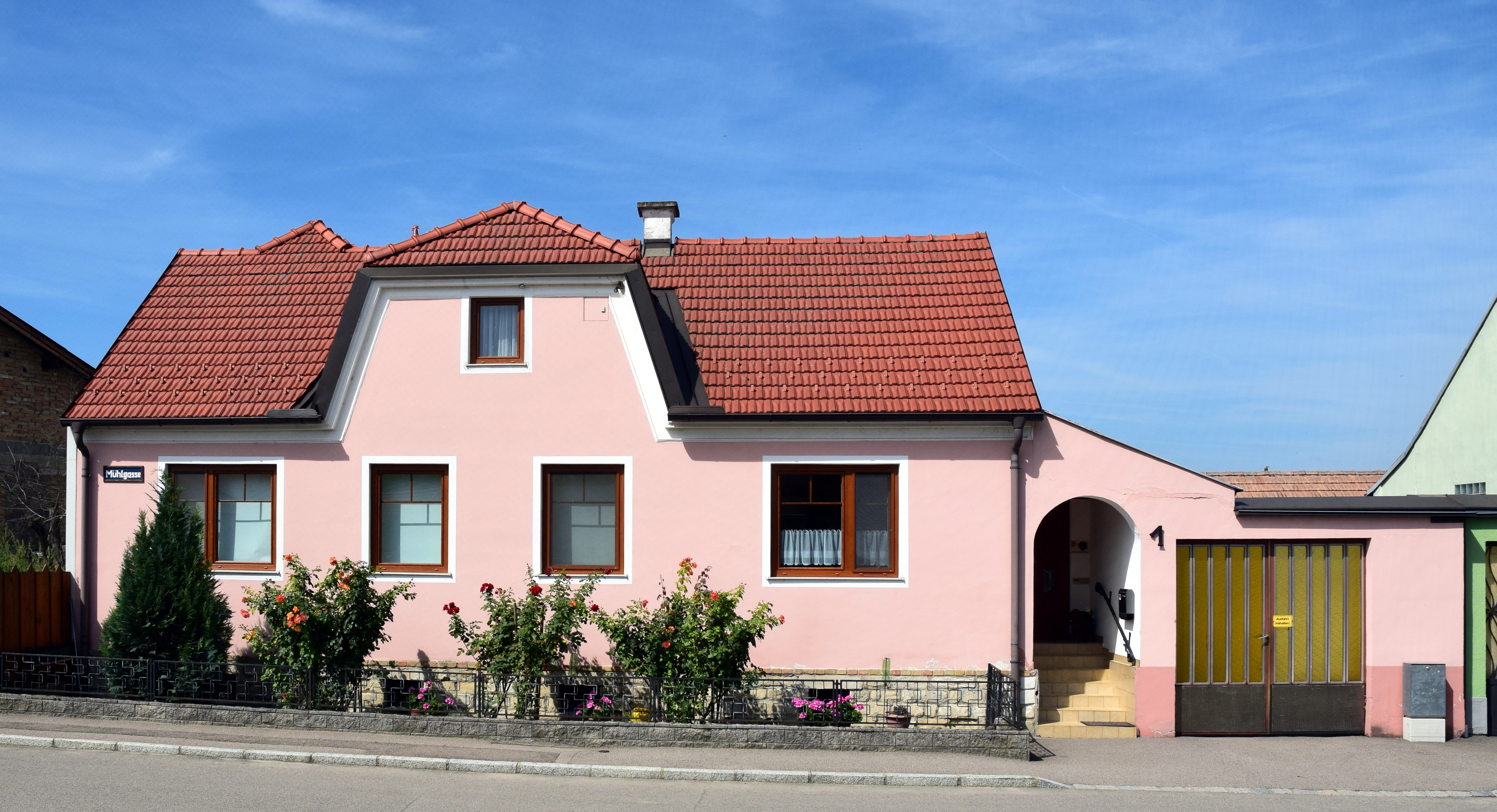 | 07:38, 20. Aug. 2017 | Mühlgasse 1.jpg (Datei) | 2,87 MB | Bürgerhaus, Mansarde mit Schopfwalmdach | 1 | |